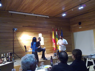 Respecto a los vinos pudimos catar tres reservas muy distintos de bodegas Franco-Españolas. Para nuestra sorpresa, entre el público pudimos contar con la presencia de Carlos Estecha, enólogo de esta bodega, que junto con Gonzalo Gonzalo manifestaba las primeras impresiones de los vinos, indicaba el tipo de mercado que se quiere alcanzar, el proceso de elaboración llevado a cabo y un sin fin de anécdotas que amenizaron la cata.